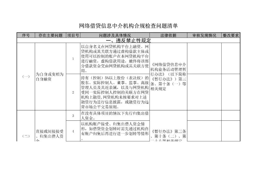 附件:《网络借贷信息中介机构合规检查问题清单》