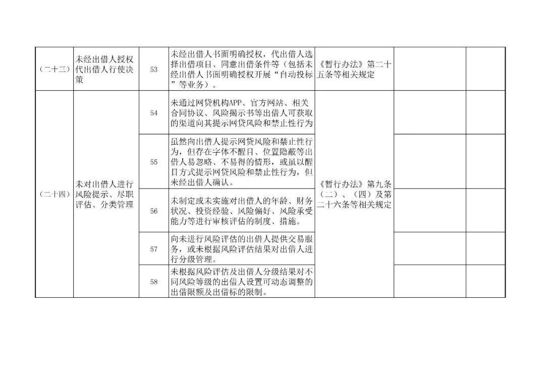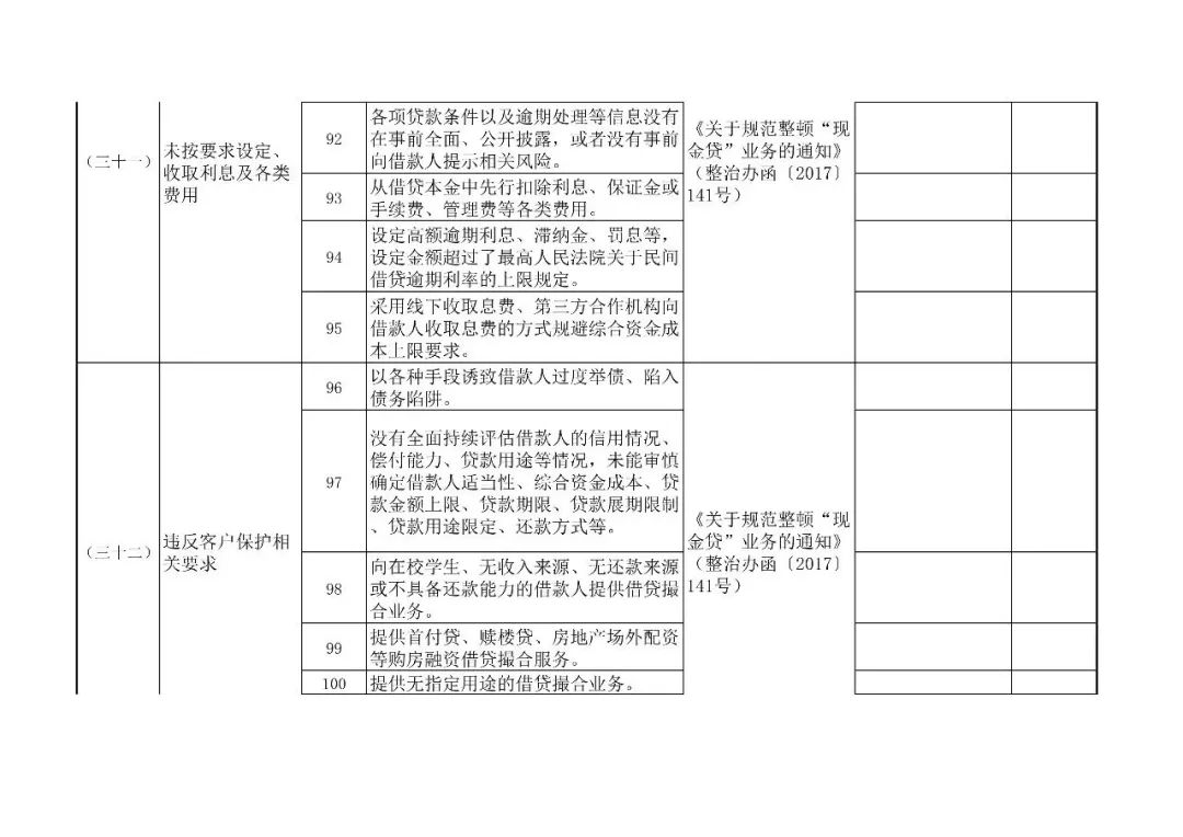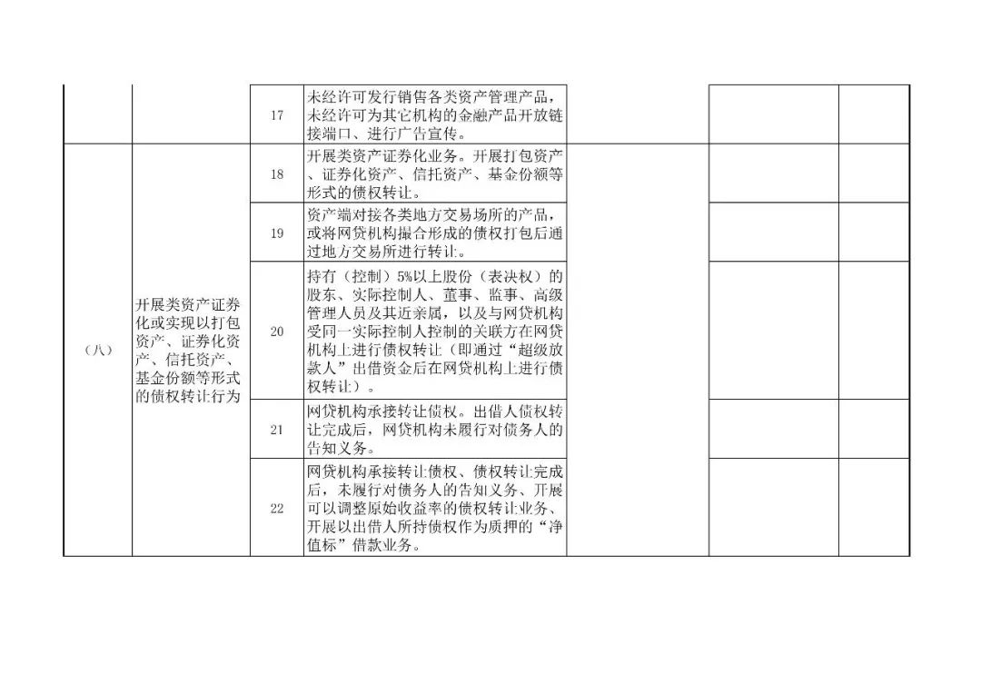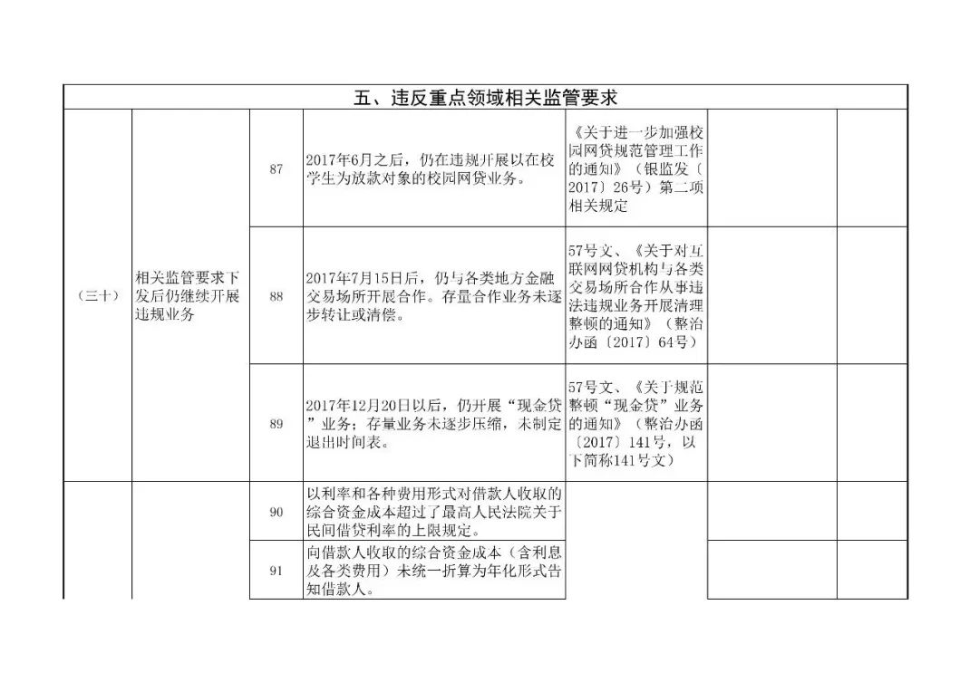 (二)全量覆盖。针对已经纳入各省(区、市、计划单列市)网贷风险专项整治名单的网贷机构开展检查,做到机构与业务检查全覆。